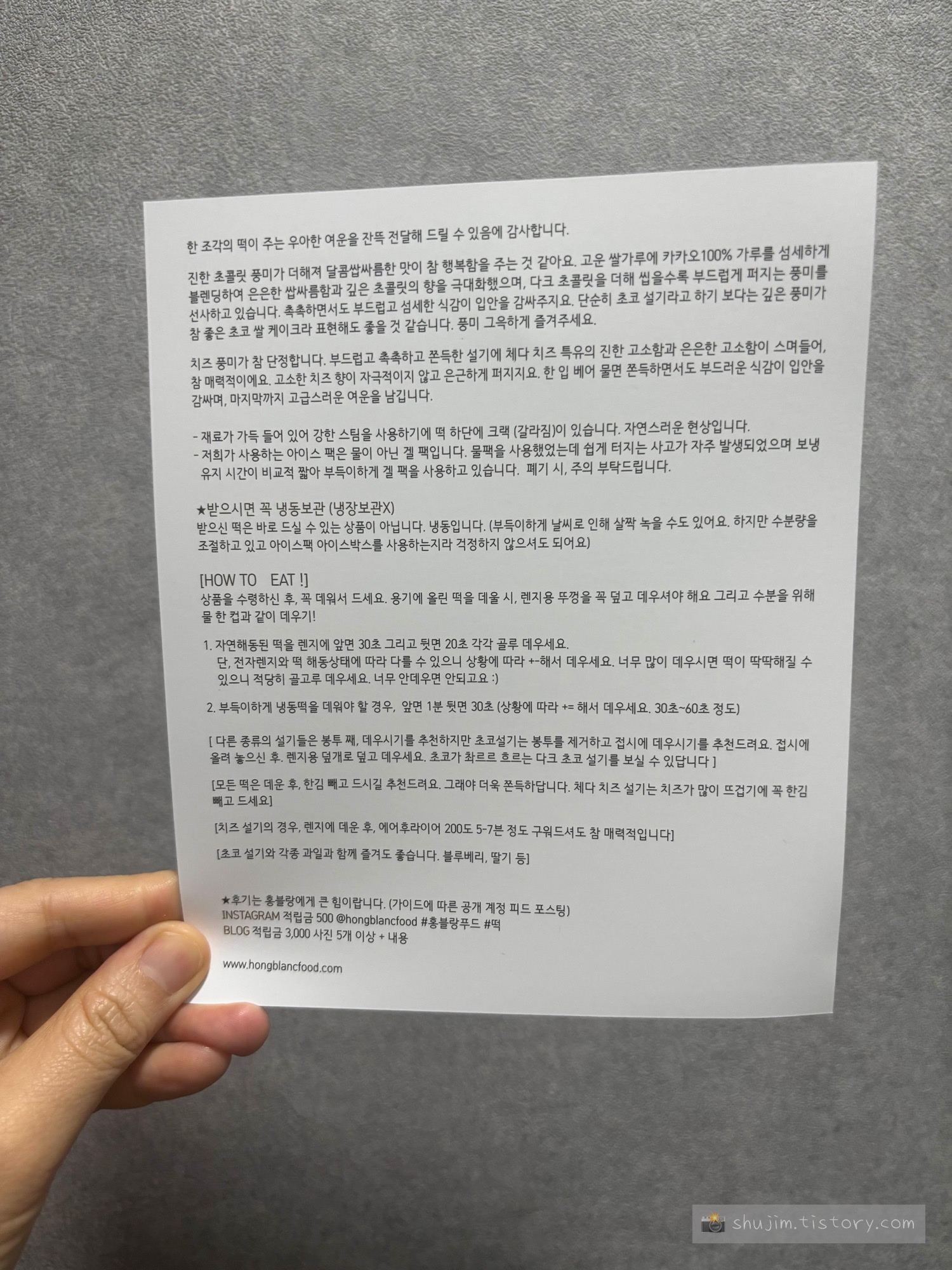 깔끔한 포장에 떡설명지까지 야무지게 들어있다.
