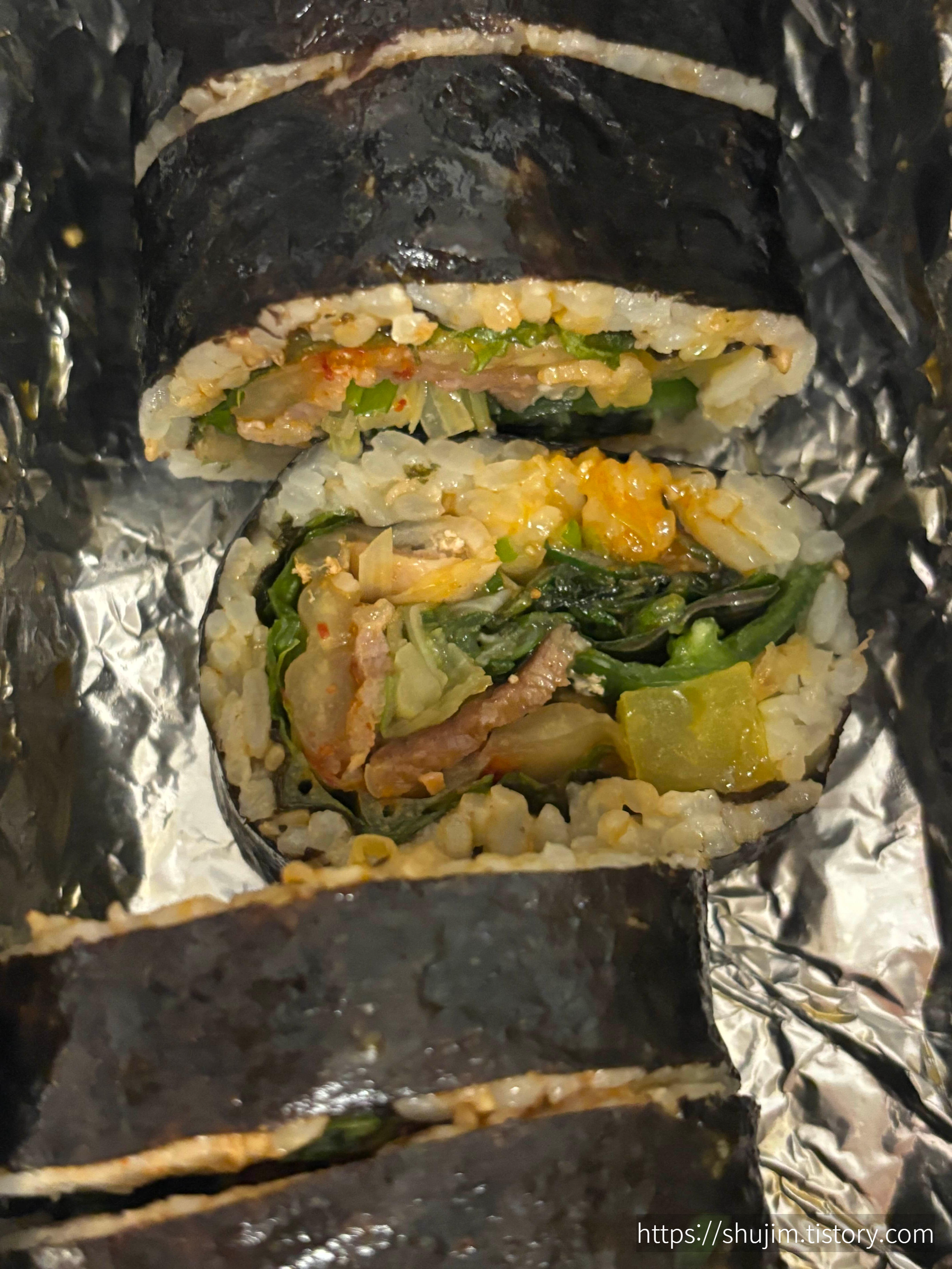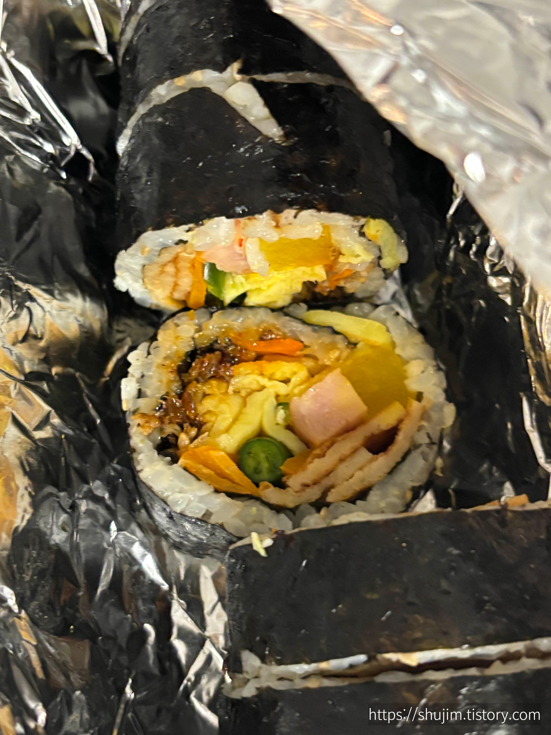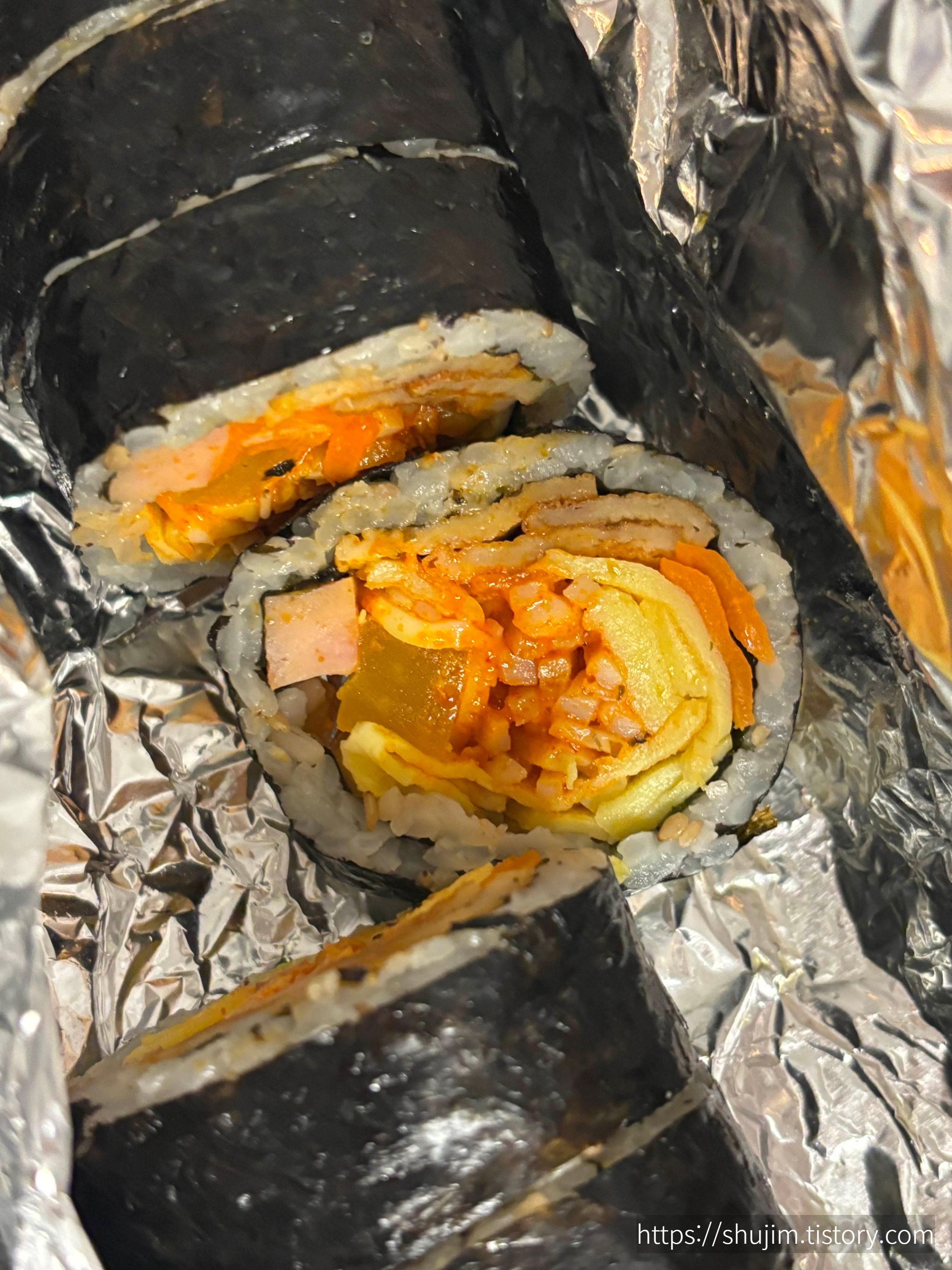 개인적으로 제일 왼쪽의 오는정기본김밥이 제일 맛있다.