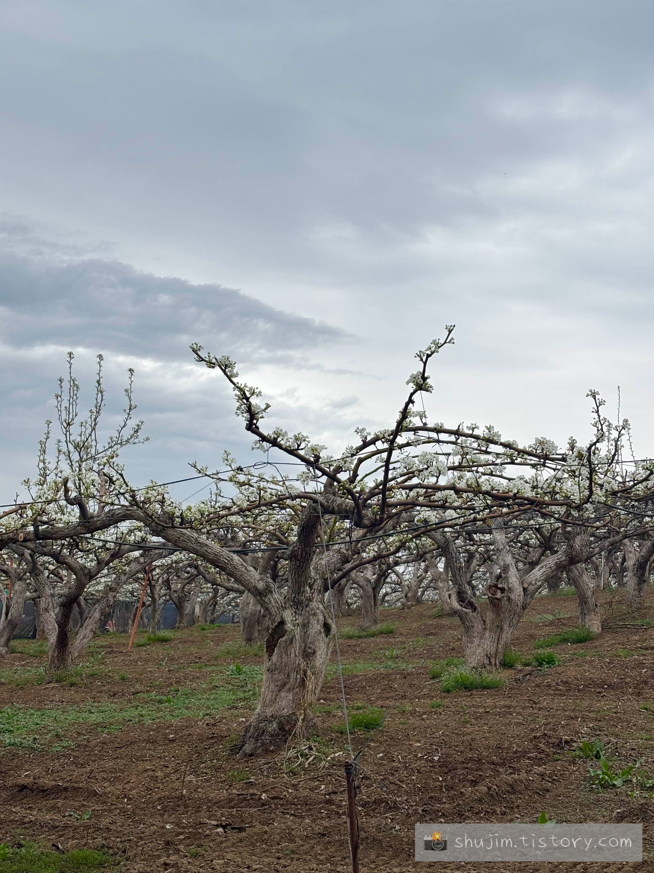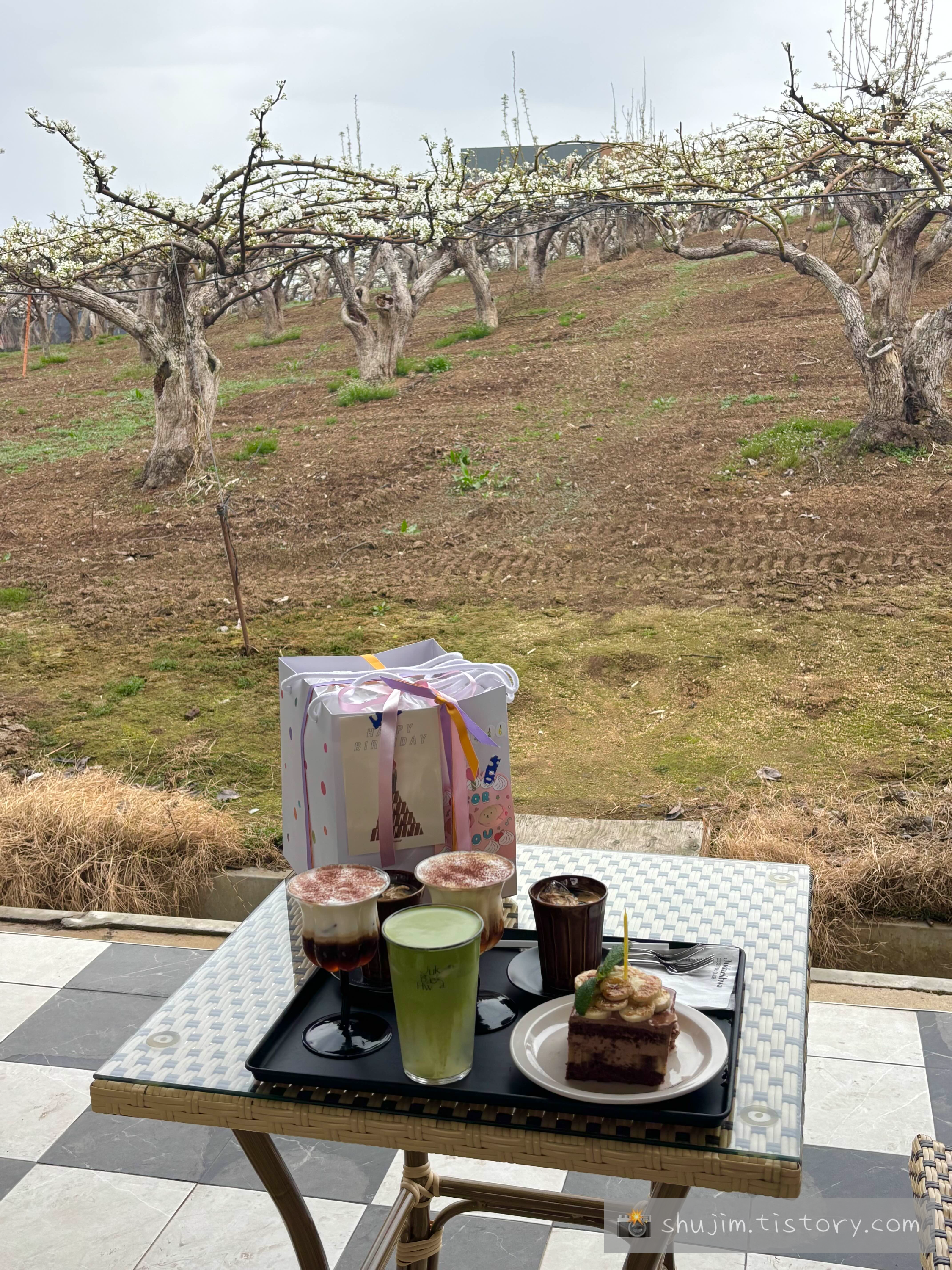 우리는 가운데 배꽃뷰 제일 명당자리에 자리를 잡았다.