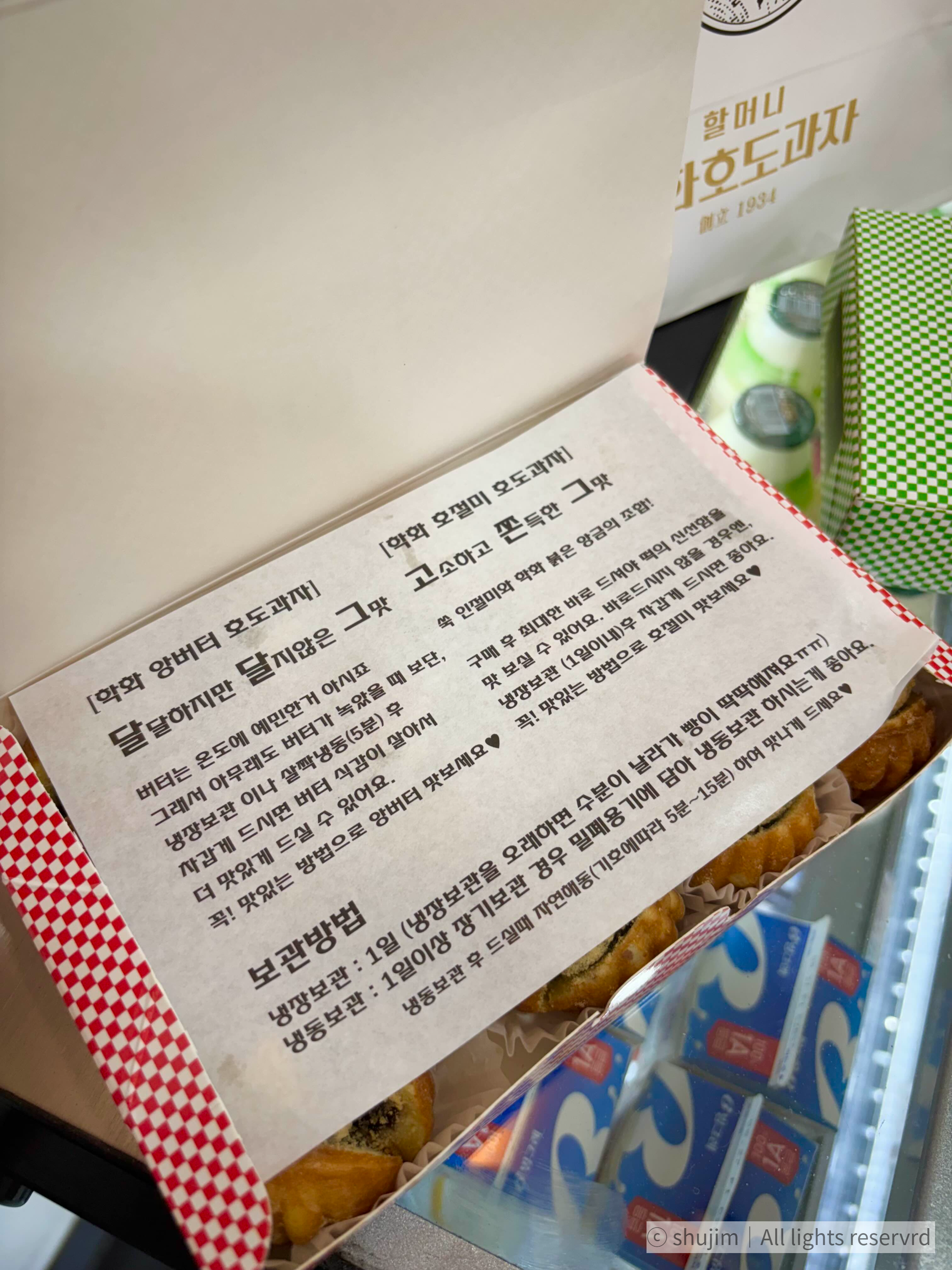 - 구매한 호도과자는 바로 먹어도 맛있지만, 남은 건 냉동 보관 후 하나씩 꺼내 자연해동하면 새로운 식감으로 즐길 수 있어요.