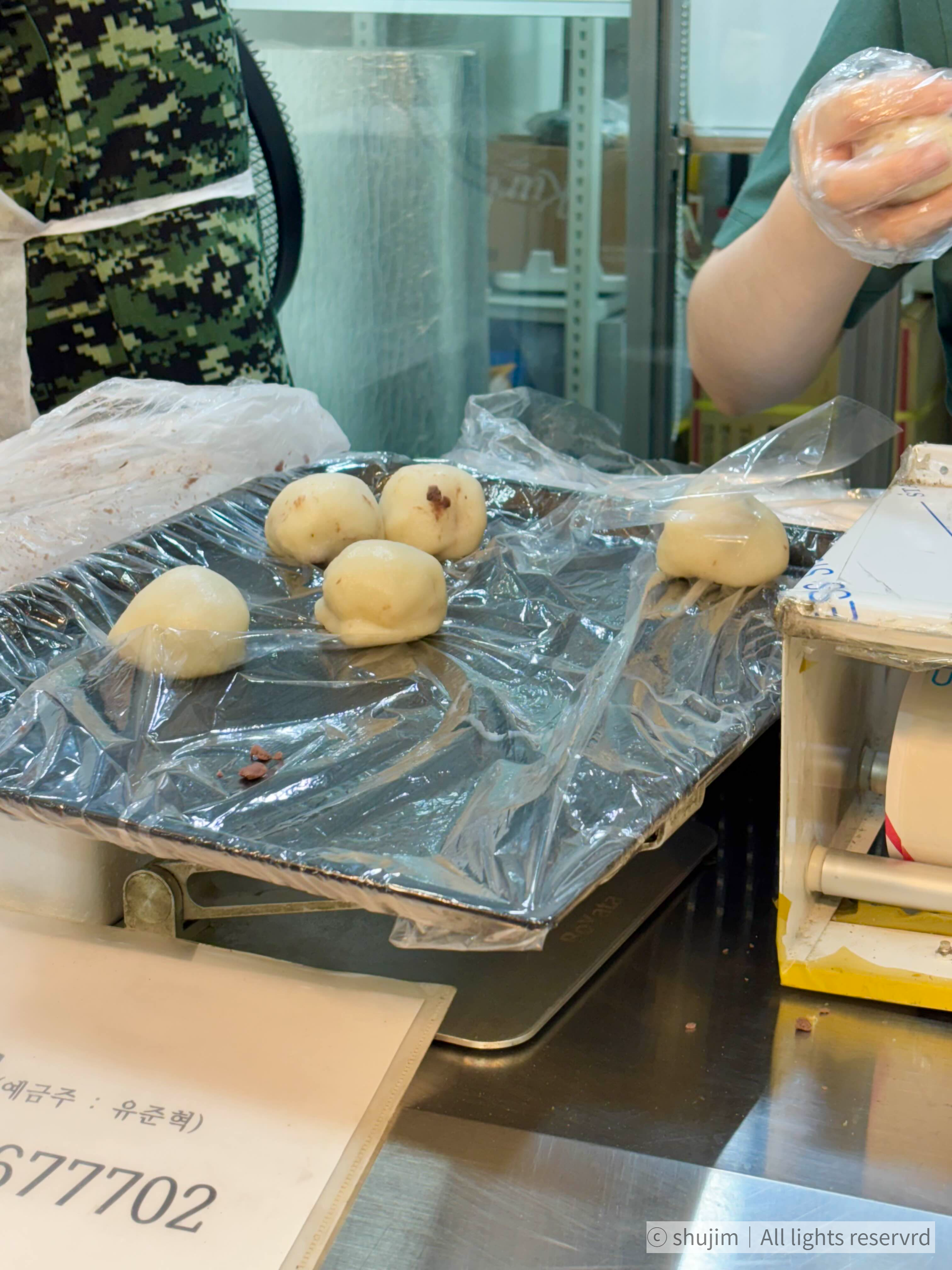 하지만 이 집의 진짜 시그니처는 단연 찹쌀떡! 가게 안쪽에서 바로바로 만들어내는 모습을 직접 볼 수 있는데, 사장님의 손놀림이 얼마나 빠르신지 포장 과정도 번개같이 빠르고, 떡집 전체가 느긋한데 빠르게 돌아가는 느낌이었어요.